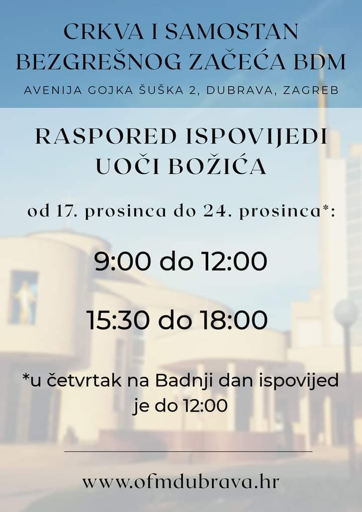 Raspored ispovijedi uoči Božića